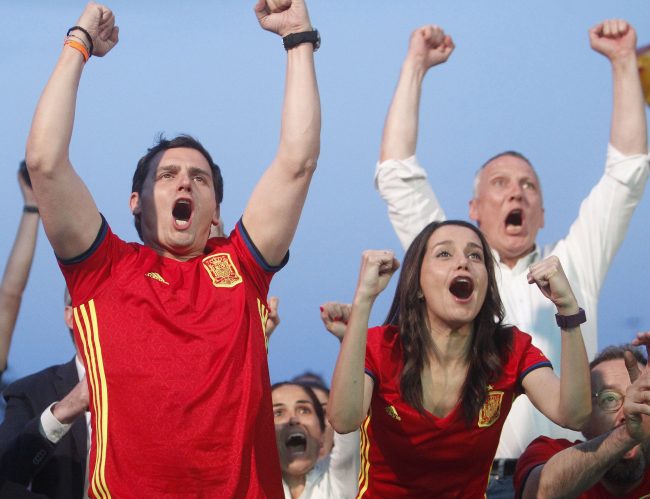 Efe – Podemos perdería 6,4 puntos y más de 1,4 millones de votos respecto a las generales de 2016, ya que le atribuye 3.611.000 apoyos (el 14,7 %) que lo dejarían como cuarta fuerza parlamentaria, con 42-44 escaños. Además, destaca que el 68 % de los votantes del PP considera que Albert Rivera (Cs) tiene un proyecto de futuro adecuado para España y que sólo el 58 % de esos electores opina lo mismo de Mariano Rajoy. El 69,9 % de los encuestados considera que los independentistas tratarán de repetir la DUI si logran el gobierno de la Generalitat. Madrid (España), lunes 15 de enero de 2018. Fotografía: PLAZA ARCO DE TRIUNFO DE BARCELONA (ESPAÑA), 17.6.2017. Eurocopa de Francia. El presidente de Ciudadanos, Albert Rivera (i) y la líder de Ciudadanos en Cataluña, Inés Arrimadas (d), celebran la victoria d ela Selección Ciudadanos Coloca una pantalla gigante para seguir en directo el partido d ela selección en Cataluña. «Tenía claro que lo haría y lo ha hecho. Desde que se comenzó a planificar la campaña de Ciudadanos, sabiendo que los tres primeros partidos de España en la Eurocopa de Francia coincidían con las dos semanas que tienen los partidos políticos para pedir el voto, Albert Rivera le dejó claro a su equipo que en una de esas tres ocasiones quería estar en la calle de su Barcelona natal para apoyar al equipo nacional. Hubiera ocurrido el pasado lunes, durante el debut de los de Vicente del Bosque ante la República Checa, pero para ese mismo día se fijó el debate a cuatro y eso trastocó los planes. La insistencia de Rivera ha sido tanta que este viernes ha estado apoyando en la distancia a España frente a Turquía en la Ciudad Condal, pese a que estaba programado un acto en Badajoz, donde Ciudadanos podría disputar un escaño. Preguntado en los días previos por los recelos de la alcaldesa Ada Colau a la instalación de pantallas gigantes para seguir la Eurocopa, Rivera decía que era algo «normal en el resto de España y en las ciudades europeas»», informa Libertad Digital. Archivo Efe
