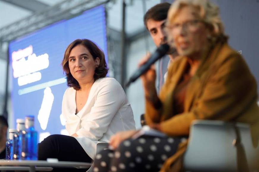 Lasvocesdelpueblo y Agencias – «Si estamos pudiendo hacer todo lo que estamos haciendo con Gobiernos en minoría en un periodo dificilísimo y con todas las élites más bien en contra y no remando a favor, eso quiere decir que con la experiencia que ganamos en este mandato tenemos que ir a por un segundo para consolidar esas políticas del cambio», ha remarcado la alcaldesa ‘morada’ del Ayuntamiento de Barcelona. Madrid (España), domingo 14 de octubre de 2018. Fotografía: MADRID (ESPAÑA), 14.10.2018. Las alcaldesas de Barcelona, Ada Colau (i), y de Madrid, Manuela Carmena, durante su participación en los debates de la universidad de otoño de Podemos, en una ponencia titulada ‘Un debate entre alcaldesas’, en el Jardín de Las Vistillas de Madrid. Efe.