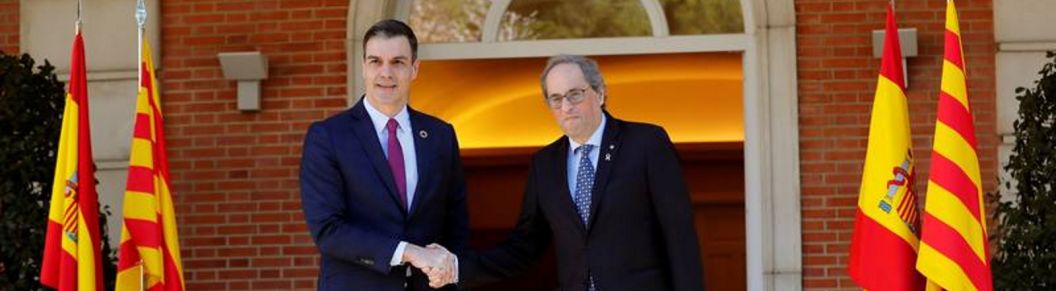 La primera reunión de la Mesa «Separatismo-España» que reúne a delegaciones del Gobierno central y el separatismo encabezadas por el jefe del Ejecutivo, Pedro Sánchez, y el inhabilitado por desobediencia, el delincuente Quim Torra, ha comenzado pasadas las 16:30 de esta tarde en el Palacio del Gobierno del reino de España (La Moncloa).