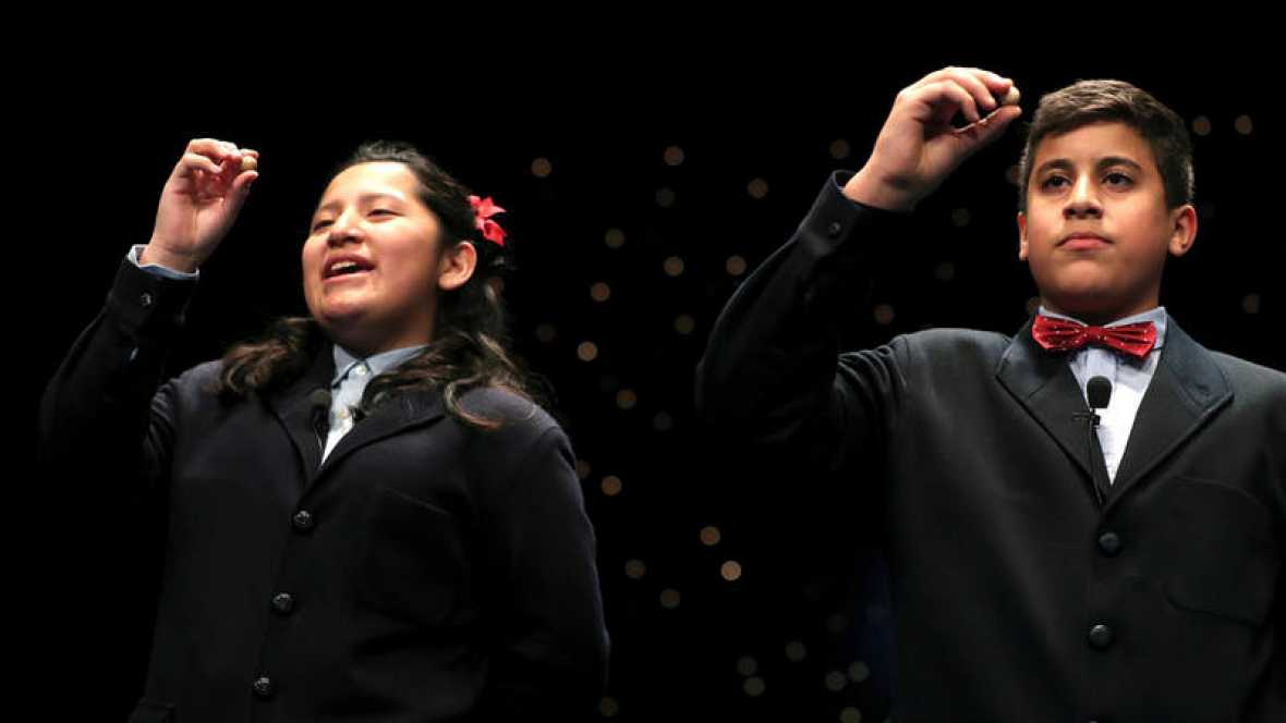 Los niños de San Ildefonso Youseff Salhi y Noelia Katiuska Medina, de 14 y 13 años, han cantado el primer premio casi “in extremis” en el último alambre de la sexta tabla. «Pensábamos que no cantábamos ya nada», ha contado Noelia a los medios.