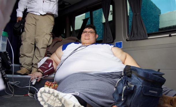 Efe – Juan Pedro, un mexicano que con 500 kilos está considerado el hombre más obeso del mundo, inició hoy su tratamiento médico para bajar de peso y recuperar la salud, tras ser trasladado a Guadalajara (oeste de México) en una furgoneta habilitada para la ocasión. México, jueves 17 de noviembre de 2016. Fotografía: Fotografía cedida por la Agencia MKRP, del joven Juan Pedro, un mexicano que con 500 kilos, considerado ya el hombre más obeso del mundo, inició hoy su tratamiento médico para bajar de peso y recuperar su salud, tras ser trasladado a Guadalajara (México) , en una furgoneta habilitada para la ocasión. Efe.