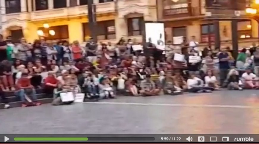 Redacción.- Bilbao (España), sábado 14 de agosto de 2021. El pueblo se ha movilizado esta tarde frente al Teatro Arriaga Antzokia de Bilbao (Las Vascongadas -País Vasco-) España para mostrar su repulsa frontal a la imposición de la llamada «vacuna COVID 19», experimento genético de las empresas farmacéuticas en seres humanos, concretamente en niños y adolescentes, después de que el presidente de la Comunidad autónoma española de las Vascongadas, Iñigo Urkullu Renteria (PNV), se planteara legislar, desde el gobierno regional para que la «vacuna COVID 19» sea obligatoria para toda las población en esta parte del territorio nacional del Reino de España. Ante ello, los padres de familias, movilizados por la plataforma «Padres por la Verdad» se congregaron masivamente para denunciar «el apestoso olor de la mentira, al engaño y a la manipulación» del Ejecutivo regional y los medios oficiales sobre el COVID 19 y «vacuna COVID 19».