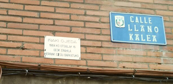 Según asegura COVITE, «la placa se encuentra situada en el número 80 de la calle Llanos, en el barrio de Cruces. En ella puede leerse en euskera la frase: ‘Iñaki Ojeda. 16 de febrero de 1984. Asesinado por los GEO. El pueblo no perdonará’», señala COVITE.