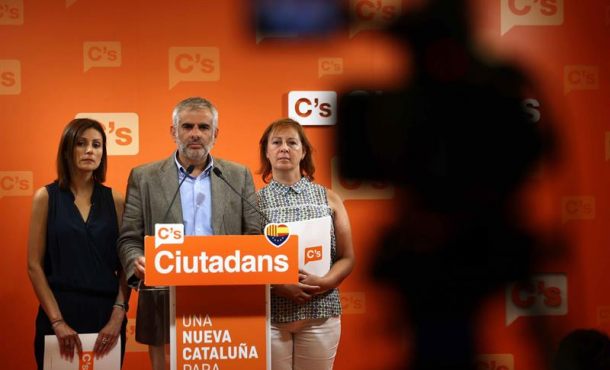 Lasvocesdelpueblo y Agencias – El portavoz de Cs en el Parlamento catalán, Carlos Carrizosa, después de considerar que VOX es un partido de «extrema derecha» y lo ha dicho así de contundente: «no los podemos vender con quienes defienden posturas de extremo«, en referencia a VOX sobre la modificación de la Ley de Violencia de Género por «Ley de Violencia Intrafamiliar» que incluya la violencia también de la mujer contra: su marido y sus hijos, según se ha podido comprobar con datos oficiales de denuncias falsas o asesinato de esposo y niños, después de que el PP ya se ha citado con VOX para negociar en esta materia y otros puntos de la propuesta de VOX al 2-D Andalucía. Barcelona (España), sábado 05 de enero de 2019. Fotografía: El portavoz parlamentario de (C’s), Carlos Carrizosa (c), junto a las diputadas en el Parlamento autonómico español de Cataluña y miembros de la comisión de Justicia, Lorena Roldán (i) y María Valle (d), en la rueda de prensa que han ofrecido en la sede de su partido, donde ha avanzado que impugnarán los Presupuestos «donde haga falta» si incluyen una partida para un referéndum unilateral de separación de Cataluña con el resto de España, y ha criticado que el gobierno de JxSí acepte las «imposiciones» de la CUP. Efe.