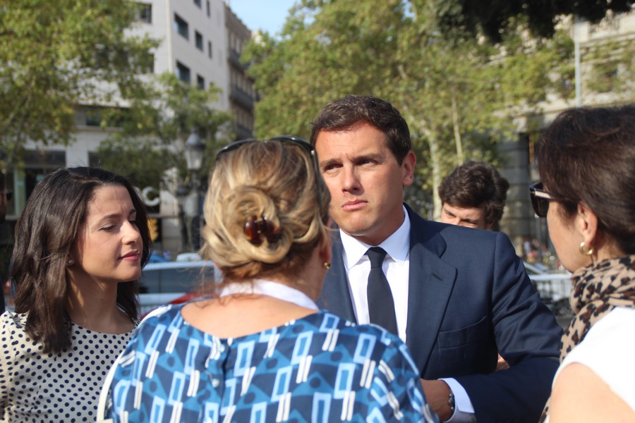 Redacción – El presidente de Ciudadanos Cs, Albert Rivera, no ha tardado para replicar a la «policía política» fascista que se está convirtiendo los «Mozos de Escuadra». Un cuerpo policial claramente racista antiespañol que bajo «órdenes» del neonazi presidente de la Generalidad, «Quim Torra» -apunta el presidente de Ciudadanos Cs- «persigue» a las españolas y españoles que «limpian los espacios públicos» en la región catalana de «símbolos separatistas ilegal»: Estrelladas (estelada, en dialecto catalán), lazos amarillos, pancartas y propagandas fascistas de todo tipo, ha dicho Rivera. Se trata de algo insólito, «el mundo a revés», denuncia Rivera apuntando a la complicidad del Gobierno traidor del PSOE del presidente Pedro Sánchez, cuyo silencio ante este atropello fascista de Torra y de sus Mozos «debilita aún más al Estado en Cataluña», ha dicho Rivera. Barcelona (España), domingo 19 de agosto de 2018. Fotografía: PLAZA DE CATALAUÑA DE BARCELONA (BARCELONA) ESPAÑA, 17.08.2018. Acto de homenaje y recuerdo de los atentados islamistas de Cataluña, organizado por el Ayuntamiento de Barcelona, con asistencia de su Majestad el Rey Felipe VI. El presidente de Ciudadanos Cs, Albert Rivera (segundo plano en el centro) junto a la líder de Ciudadanos Cs en Cataluña, Inés Arrimadas (segundo plano a la izquierda), a su llegada en Plaza de Cataluña. Lasvocesdelpueblo