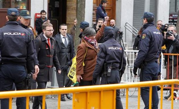 Tras su declaración, Boya ha salido del tribunal entre vítores de una delegación de diputados de ERC y un centenar de simpatizantes llegados de Barcelona y Lleida que la han acompañado a su llegada.