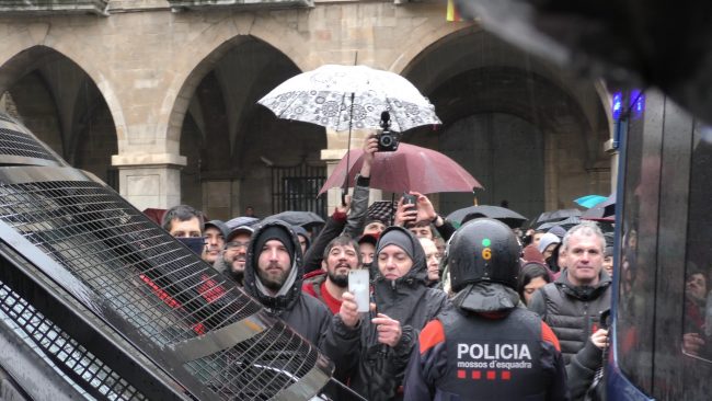 Vídeo. Manresa, 04.02.2018. CUP, enjaulada, mira a jóvenes de DN cantar «Primavera» (Cara Al Sol) en Manresa