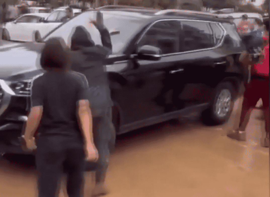 FOTOGRAFÍA. PAIPORTA (VALENCIA) COMUNIDAD VALENCIANA (REINO DE ESPAÑA, 03 DE NOVIEMBRE DE 2024. Vecinos abandonados a su suerte por las Administraciones (Gobierno de España de Pedro Sánchez, PSOE, y Gobierno regional de la Generalitat Valenciana, PP) atacan el coche del Presidente del Gobierno que huye escondido entre las sillas del vehículos abandonando la visita oficial con sus Majestades los Reyes de España quienes se quedan conversando con los vecinos. El coche del presidente de Gobierno llega al centro de la Cruz Roja con las lunas rotas. Gritos de 'fuera', así como lanzamiento de barro, han recibido a la comitiva de sus majestades los reyes de España, el presidente del Gobierno de España, Pedro Sánchez Pérez-Castejón (PSOE), y el president del Govern de la Generalitat Valenciana, Carlos Mazón Guixot (PP), a su llegada al centro de Paiporta (Valencia) -zona cero del apocalipsi sobre la provincia de Valencia, la Depresión Aislada en Niveles Altos (DANA) o (gota fría) del martes 29 y miércoles 30 de octubre de 2024. Decenas de voluntarios y vecinos de Paiporta indignados tras sufrir el claro abandono de todas las instituciones del estados durante varios días en los han estado conviviendo con cadáveres de sus seres queridos en los refugios y otros sitios improvisados, han recibido con insultos a la comitiva, con gritos de "fuera, fuera" dirigido a los dos principales responsables: Pedro Sánchez Pérez-Castejón (PSOE) y Carlos Monzón Guixot (PP), y se han encarado con ella, mientras que tanto el rey como la reina ha intentado mediar con jóvenes que se les han acercado. Con la cara manchada de barro, igual que su abrigo, el rey ha seguido avanzando por una de las calles principales de esta localidad de la zona cero de la dana y ha tratado de tranquilizar a varios de los voluntarios, muy alterados tras cinco días de desastre por la riada. La reina también ha dialogado con algunos de los indignados, mientras que seguían los gritos de 'fuera, fuera' y algunos insultos dirigidos a todas las autoridades. Aunque en un principio la seguridad ha comenzado a abrir paraguas para evitar la caída de barro a la comitiva, posteriormente los han cerrado mientras que el rey seguía caminando y deteniéndose a hablar con los voluntarios y vecinos alterados. Efe.