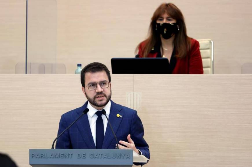 El pleno ha arrancado pasadas las 10.00 horas en el Auditorio del Parlament, con una intervención inicial de Aragonès para pedir el apoyo de la cámara, antes de dar paso a los líderes parlamentarios, de mayor a menor representación, aunque acabando con ERC.