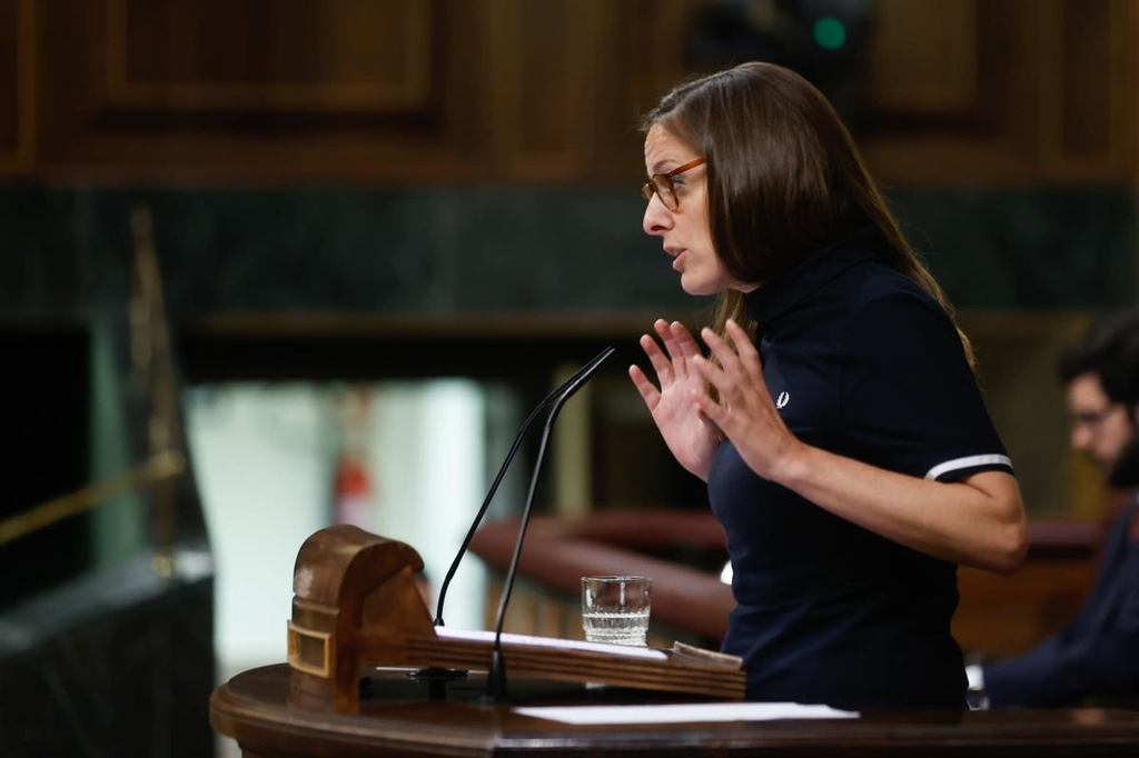 Efe.- Madrid (España), miércoles 13 de julio de 2022. La portavoz de la ultraizquierda separatista CUP en el Congreso de los Diputados, Mireia Vehí Cantenys, ha recomendado al presidente de Gobierno socialcomunista de España, Pedro Sánchez Pérez Castejón,controlar los precios y subir los salarios para combatir la inflación, medidas mejores que las propuestas por él en la primera jornada del debate del estado de la nación.