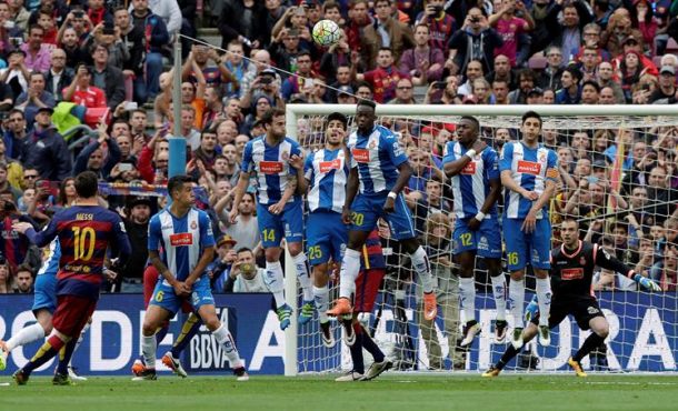 Agencias – El FC Barcelona quiere cerrar 2016 con una victoria frente un Real Deportivo Club (RCD) Español en racha, que acumula nueve partidos sin perder y llega al Camp Nou como el tercer mejor visitante del campeonato. Barcelona (España), domingo 18 de diciembre de 2016. Fotografía: El delantero argentino del Barcelona Lionel Messi (i) se dispone un gol ante el Espanyol en el Campo Nuevo de Barcelona. Archivo Efe.