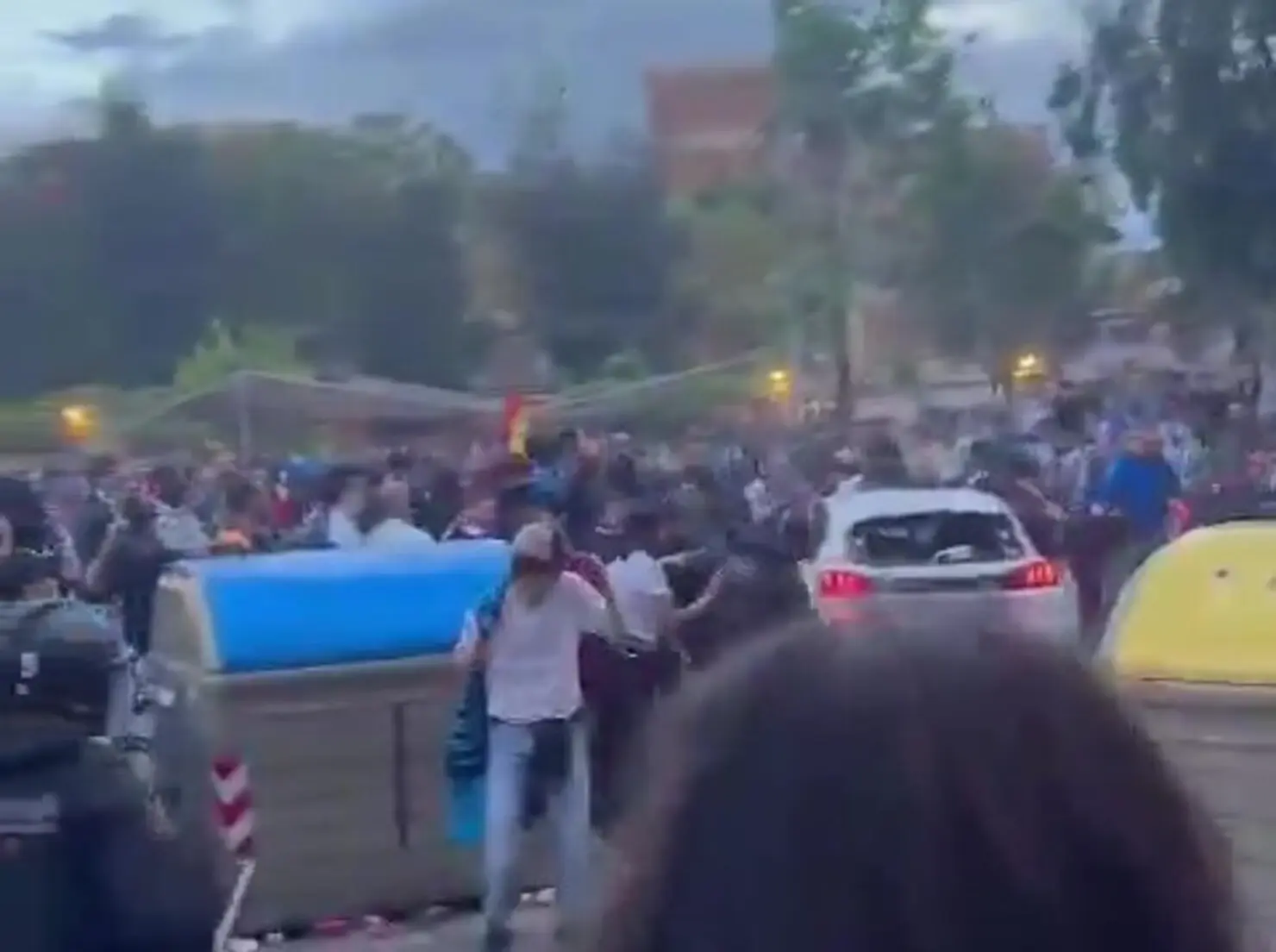 También, las imágenes muestran momentos de tensión tanto con los aficionados y las fuerzas policiales como entre la conductora y los aficionados. Se puede comprobar varios lanzamientos de objetos contundentes contra el vehículo.