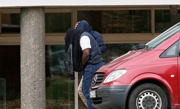 Efe – De acuerdo con la acusación, Mousa H.A. participó como combatiente en operaciones contra las tropas del presidente sirio, Bachar al Asad, y Abdulmalk A. En primavera de 2013 tomo como rehén cerca de Al Tabqa a un francotirador del régimen sirio, le obligó a cavar su propia tumba y lo degolló. Berlín (Alemania), martes 9 de mayo de 2017. Fotografía: Un sospechoso (c) es conducido a comparecer ante el Tribunal Federal de Justicia en Karlsruhe (Alemania) tras su detención bajo sospecha de pertenecer a la organización terrorista Estado Islámico (EI). Archivo Efe.