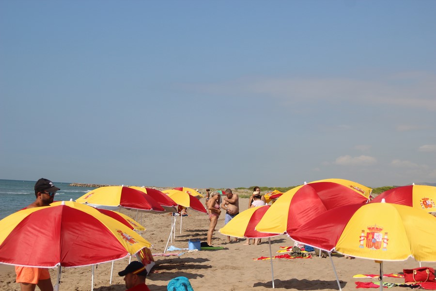 Las españolas y españoles han finalizado la tercera plantada de las sombrillas españolas cantando el himno de la Resistencia Catalana contra el fascismo en Cataluña