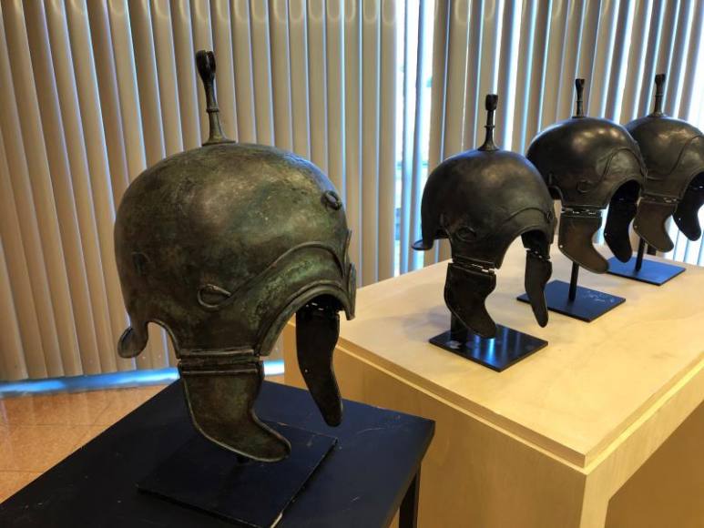 Efe – Siete cascos celtibéricos de bronce, expoliados de la localidad de Aranda de Moncayo (Zaragoza) en los años 1980, fueron devueltos este miércoles en excelente estado de conservación a España por parte de su actual propietario en un acto oficial en la sede de la Unesco. París (Francia), miércoles 4 de noviembre de 2019.