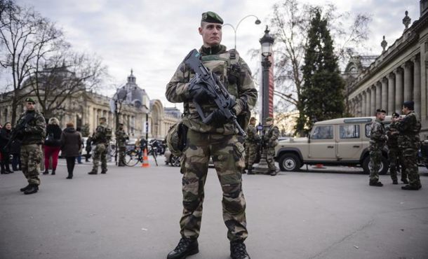 Efe – El hombre que hizo colisionar su vehículo contra un furgón policial en la parisina avenida de los Campos Elíseos llevaba al menos un arma encima y tuvo que ser sacado del coche en llamas por los gendarmes después de que éste explotase, según el portavoz del Ministerio del Interior, Pierre-Henri Brandet. parís (Francia), lunes 19 de junio de 2017. Fotografía: Soldados franceses patrullan la Avenida de los Campos Elíseos en París, Francia. Archivo Efe.