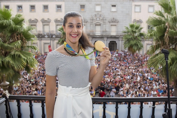 La onubense ha dicho en rueda de prensa, tras el homenaje recibido este jueves en el Ayuntamiento de Huelva, que es consciente de que «la vida de un deportista es muy dura» y que «hay que cuidarse de las lesiones», pero ha destacado que tiene la suerte de que su equipo le cuida, por lo que prevé que haya «Carolina para rato». Ha explicado que, «por el momento», su medalla de oro irá con ella a donde vaya hasta ocupar «el mejor lugar» en su casa y ha recalcado que se siente «orgullosa» de que tanta gente haya seguido por televisión sus partidos y también por el hecho de ser «pionera» en su deporte en España.