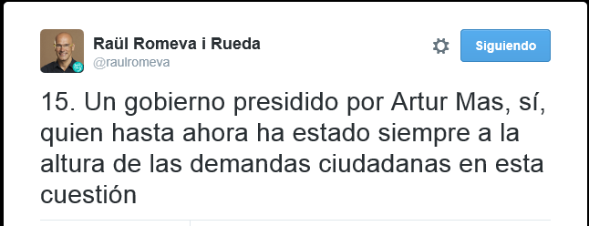 15. Un gobierno presidido por Artur Mas, sí, quien hasta ahora ha estado siempre a la altura de las demandas ciudadanas en esta cuestión