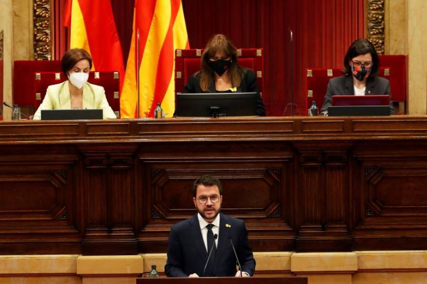 Efe – El candidato de ERC a la presidencia de la Generalidad de Cataluña, Pere Aragonès García, se ha comprometido este jueves en su discurso de investidura a trabajar para «culminar la independencia» de Cataluña y ha invocado el ejemplo de Escocia, emplazando a su vez a España a emular al Reino Unido y permitir así un referéndum. Barcelona (España), jueves 20 de mayo de 2021.