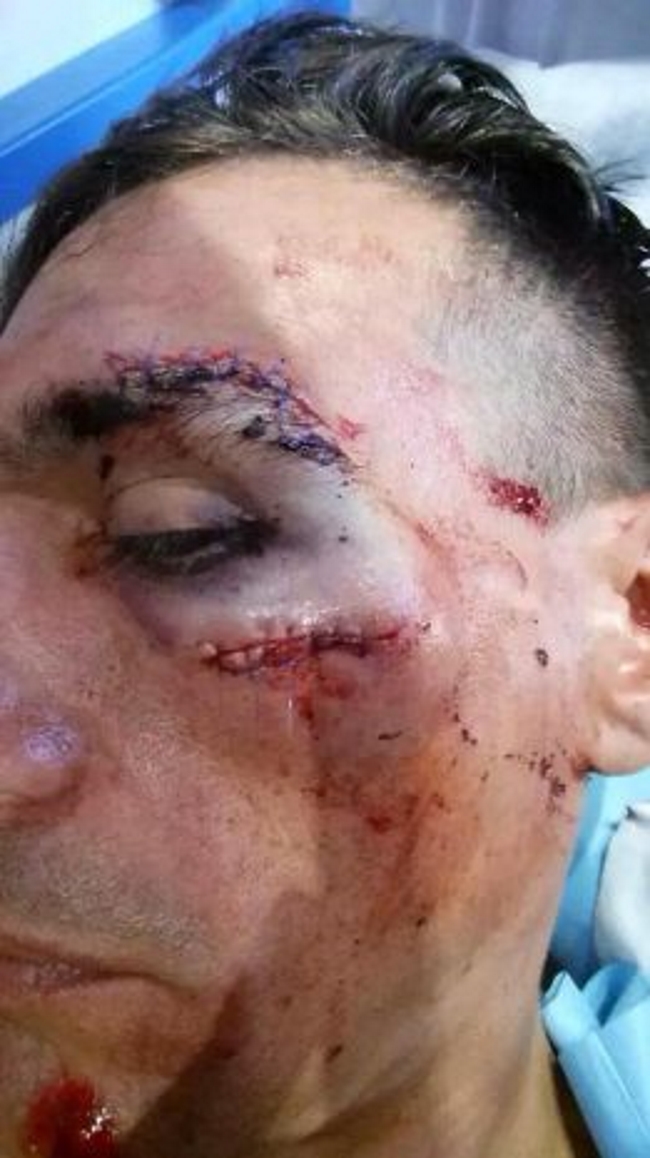 Lasvocesdelpueblo y Biciclismo – Paolo Tiralongo ha abandonado la Vuelta a España. «¡Noche sin dormir! Hoy será doblemente difícil. Voy a tener que ser más fuerte que el dolor». «La cirugía estética hecha. Yo sólo espero que mañana -por hoy- no esté el ojo hinchado. Hice demasiados sacrificios para esta Vuelta». Así avanzó Tiralongo este hoy, 24 de agosto 2015, a través de su cuenta Twitter en las redes sociales; tras la caída masiva a 30 km de la meta ayer. <fotografía: Los puntos de sutura en el rostro de Tiralongo. Foto/As.com>.