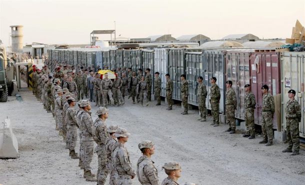 Efe – A continuación el féretro será trasladado al Anatómico Forense hasta la celebración del funeral, inicialmente previsto para esa misma tarde en la base «General Almirante», sede del Regimiento de Caballería ‘Lusitania’ número 8, en la localidad valenciana de Marines. El cuerpo del soldado Aarón Vidal López, fallecido ayer en Irak, llegará mañana a las 9 horas a la terminal militar del aeropuerto de Manises (Valencia) y será condecorado con la Cruz al Mérito Militar con distintivo amarillo durante el funeral, previsto por la tarde en la sede de su unidad, en la localidad de Marines. Valencia (España), viernes 9 de septiembre de 2016. Fotografía facilitada por el Ministerio de Defensa de la ceremonia de despedida en la base española en Irak, situada en la localidad de Besmayah, a 40 kilómetros de Bagdad, del soldado valenciano Aaron Vidal López, fallecido ayer en un accidente ocurrido en la puerta de la base. Efe.