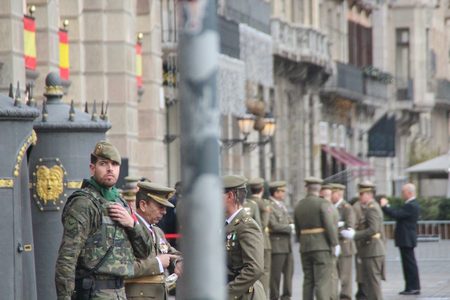Por lo que antes la llegada del también representante Institucional de las Fuerzas Armadas en las Comunidades Autónomas españolas de Cataluña, Aragón, La Rioja y Navarra, el Teniente General Inspector General del Ejército Aznar Ladrón de Guevara, pasado las 11:00 horas de la mañana, el público catalán y personalidades de la sociedad civil asistieron a una parada militar formada por una compañía de honores y encuadrada con el personal del batallón de Infantería ‘Barcelona 11/62’ de la Inspección General del Ejército y de la Subinscripción Pirenaica; Unidad de Música de la Inspección General del Ejército y banda del Regimento de Infanteria ‘Arapiles 62’ de la guarnición de San Clemente Sasebas -municipio español de la comarca del Alto Ampurdán (Gerona)-.