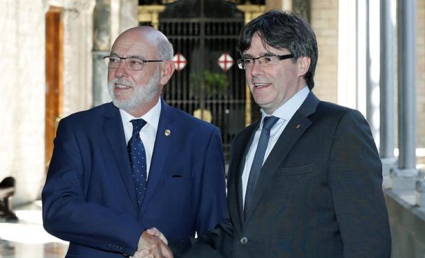 Lasvocesdelpueblo y Agencias – Tras la reunión entre el ficar general del Estado en Cataluña, José Manuel Maza, y el presidente de Cataluña, Carles Puigdemont, en un comunicado posterior, la Fiscalía General del Estado ha explicado que, «durante el transcurso de la reunión, dado el carácter institucional de la visita, no se ha considerado oportuno tratar aquellos temas que se encuentran judicializados», si bien Maza «ha recordado la obligación que incumbe a la Fiscalía de cumplir las funciones que la ley le encomienda». Barcelona (España), miércoles 24 de mayo de 2017. Fotografía: El presidente de la Generalidad de Cataluña, Carles Puigdemont, se reunió esta tarde con el nuevo fiscal general del Estado, José Manuel Maza, en un momento en el que hay interpuestas varias querellas contra miembros del Gobierno catalán y del Parlamento de Cataluña por el proceso separatista. Efe.