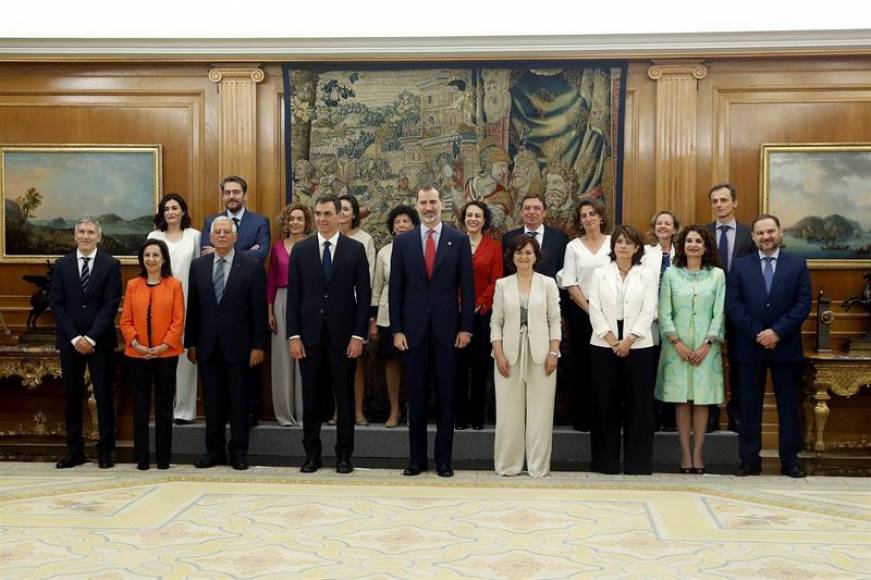 Sánchez, su vicepresidenta, Carmen Calvo, y los dieciséis ministros restantes se reunirán por vez primera en el Palacio de la Moncloa después de haber tomado ayer todos ellos posesión de sus cargos y haber hecho el traspaso de carteras.