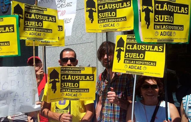 Agencias – El texto también elimina las comisiones de cancelación de las hipotecas de tipo variable a partir del quinto año e incentiva a pasar a los préstamos de tipo fijo. El Gobierno ha aprobado este viernes el proyecto de ley hipotecaria que da más margen de impago a los propietarios antes de que se ponga en marcha un proceso de desahucio. Madrid (España), sábado 4 de noviembre de 2017. Fotografía: La gente protestando por las clausulas suelo impuestas en sus hipotecas por los bancos. Archivo Efe