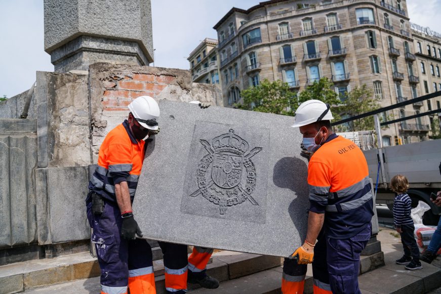 Redacción – «Este elemento se añadió a posteriori y queda descontextualizado en un emplazamiento diseñado inicialmente para poner en valor la República y homenajear el presidente de la Primera República española, Francisco Pi y Margall». Así defienden desde el Gobierno municipal socialcomunista pro separatismo del Ayuntamiento de Barcelona de la extrema izquierda ‘Barcelona En Común (Podemos) y Partido de los Socialistas Catalanes (PSC), que es la marca del PSOE en la Comunidad autónoma de Cataluña. Barcelona (España), sábado 17 de abril de 2021.