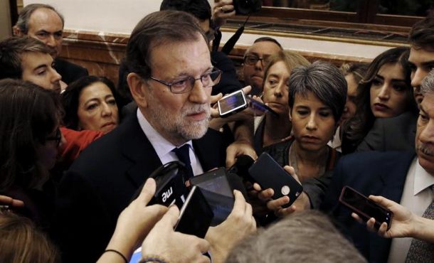 Efe – El presidente del Gobierno y del PP, Mariano Rajoy, ha lamentado hoy visiblemente emocionado el repentino fallecimiento de la exalcaldesa de Valencia y senadora, Rita Barberá, y ha trasmitido a su familia el pesar de la dirección del partido. «Estoy enormemente apenado», ha dicho. Madrid (España), miércoles 23 de noviembre de 2016. Fotografía: El presidente del Gobierno, Mariano Rajoy, hace declaraciones a los periodistas sobre la muerte de la exalcaldesa de Valencia y senadora, Rita Barberá, antes del inicio de la sesión de control, esta mañana en el Congreso de los Diputados. Efe.