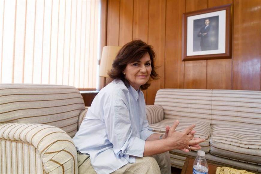 Lasvocesdelpueblo y Agencias – El Gobierno del presidente Pedro Sánchez, en palabras de sus vicepresidenta, Carmen Calvo, confirma que casi la mitad de los 141 inmigrantes del barco Aquarius, rechazados por Italia y Malta en sus costas, desembarcan todos a Cataluña este miércoles, 15 de agosto de 2018. Córdoba (España), miércoles 15 de agosto de 2018. fotografía: CÓRDOBA (ESPAÑA), 15.08.2018. La vicepresidenta del Gobierno, Carmen Calvo, ofrece una rueda de prensa en la subdelegación del Gobierno en Córdoba, para tratar el tema de los últimos acontecimientos sobre inmigración. Efe.