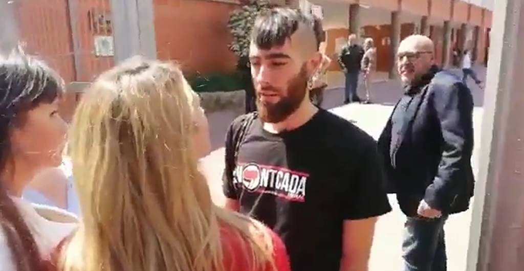 Mientras ocurre esta agresión de las libertades de estas españolas, insultas e increpadas por ser españolas en su país, los Mozos están pegados a la entrada y nunca le dicen al comando de escuadrón de muerte del independentismo de liberar inmediatamente la puerta de entrada.