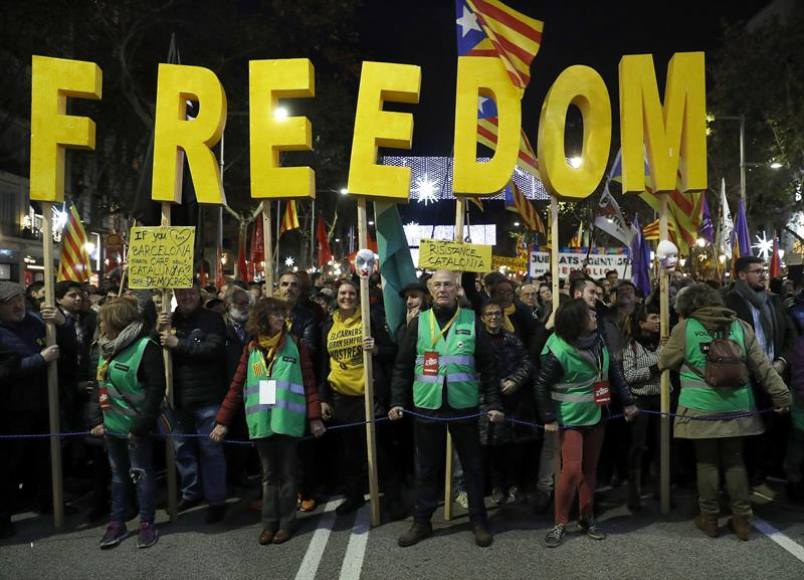 La marcha, impulsada por diversas entidades xenófobas del racismo de la ‘gestapo’ del presidente Quim Torra y a la que se han adherido la CUP y los partidos que forman parte del Gobierno nazi del presidente Torra -aunque no los consejeros-, ha tenido como lema «Tumbemos el régimen. Por los derechos sociales y políticos. Por la autodeterminación. Contra la represión».