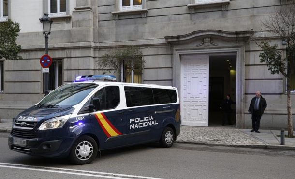 Efe – Están imputados por un delito de rebelión por su participación en el proceso hacia la Declaración Unilateral de Independencia catalana, además de otros delitos. Madrid (España), viernes 19 de enero de 201. Fotografía: MADRID (ESPAÑA), 11.1.2018. Un furgón de la Policía Nacional, a su llegada al Tribunal Supremo donde hoy el juez Llarena toma declaración como imputados al exconseller de Interior Joaquim Forn y a los líderes independentistas Jordi Cuixart y Jordi Sànchez, en el sumario abierto por el proceso catalán. Efe