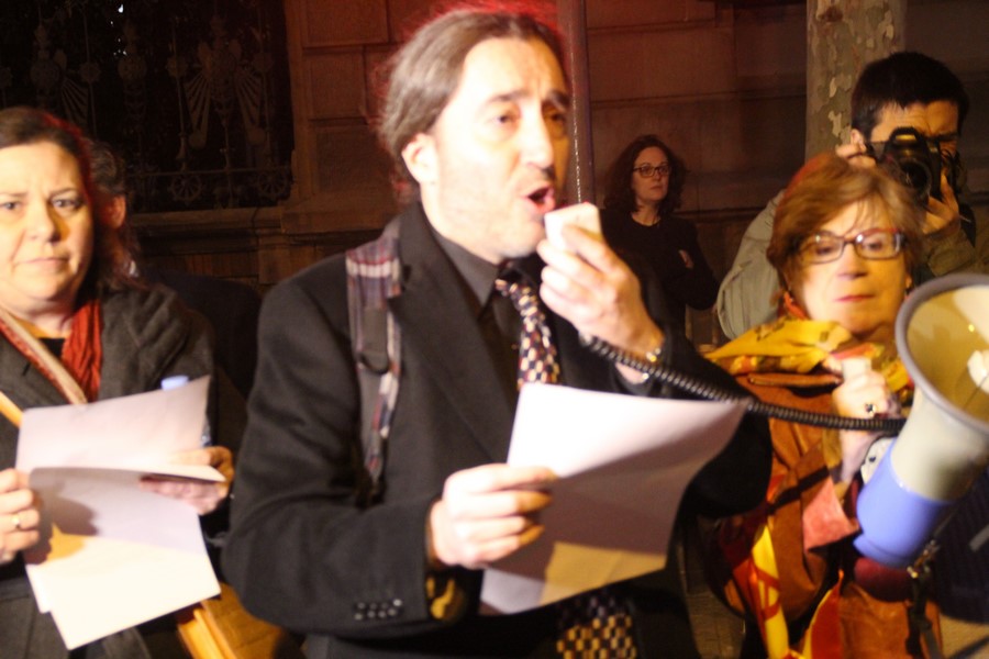 Redacción – «Son 30 años también de limpieza étnica e ideológica sistemática e implacable: una inaceptable colonización y Apartheid (segregación racial) etno-nacionalista en las instituciones clave, como son la de enseñanza primaria, la secundaria y la universitaria; en los medios de comunicación social, como son televisión, radio, prensa y digitales; y en las administraciones públicas, autonómica, municipal, incluidos servicios como los sanitarios, donde la lengua común es más que suficiente para asegurar la comunicación y lo que debe primar, en realidad, es la mejor cualificación profesional posible». Así denunció el catalán Enric Martínez, el líder del partido de la Izquierda Nacional en Cataluña (Unidos Sí). Barcelona (España), domingo 5 de marzo de 2017. Fotografía: Concentración ante la Delegación del Gobierno en Cataluña. Calle Mallorca, número 278 (Barcelona). Viernes 03.03.2017. en la imagen, el secretario general de Unidos Sí, una formación política catalana de la Izquierda Nacional, Enric Martínez, durante su intervención. El político catalán denunció la «Apartheid y el adoctrinamiento» separatista contra el resto de catalanes fieles y leales a España. Lasvocesdelpueblo.