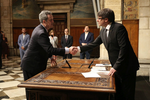 El máximo funcionario de su Majestad el Rey Felipe IV de España, Carles Puigdemont Casamajó, ha encabezó la tarde de este viernes 14 de julio de 2017 la toma de posesión de los nuevos miembros del Gobierno catalán, a los que expresó su agradecimiento «por la confianza que nos hacen de ponerse al servicio de Cataluña en esta etapa en que tenemos el encargo de organizar el referéndum del 1 de octubre».