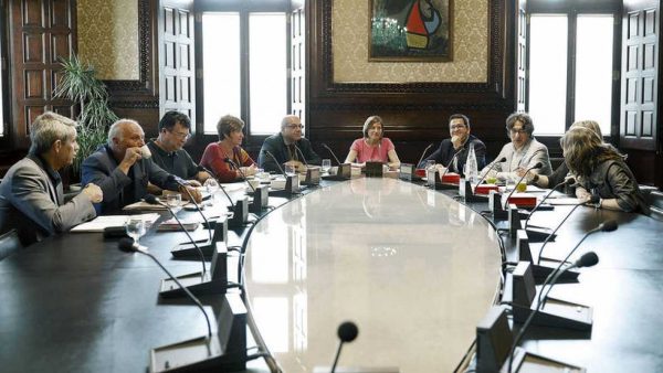 Lasvocesdelpueblo y Agencias – No estaba en el orden del día la tramitación pero la presidenta del Parlamento de Cataluña, Carme Forcadell, podría haberlo incluido. Por otra parte, el Tribunal Constitucional estudia el recurso del Gobierno del Generalidad de Cataluña por la suspensión de la reforma de ‘Lectura Única’ del Reglamento del Parlamento autonómico de Cataluña está tarde a partir de las 17:30 horas. Barcelona (España), miércoles 16 de agosto de 2017. Fotografía: CATALUÑA (ESPAÑA), 16.08.2017. La presidenta del Parlamento autonómico de Cataluña, Carme Forcadell (c), ha presidido este miércoles la reunión de la Mesa de la cámara catalana, que abre el nuevo período de sesiones del Parlamento de Cataluña. Efe.