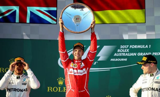 El piloto alemán Sebastian Vettel (Ferrari) ganó el Gran Premio de Australia, la primera carrera de 2017, por delante del británico Lewis Hamilton (Mercedes) y su compañero finlandés Valtteri Bottas, con lo que la escudería italiana volvió a la victoria un año y medio después de la última.