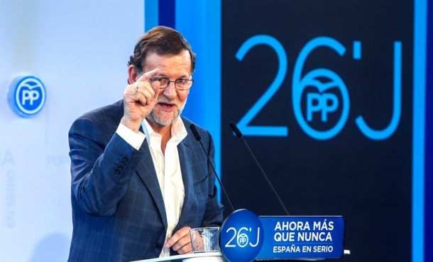 Redacción – (Vídeo del PP). Las encuestas del CIS, Metroscopia, N.C Report para los diarios ‘El País’ y ‘La Razón’, etc. parece no servido para nada en la ingeniería social; tal como querían los que pagan. Los españoles ya no se lo creen. Por eso, el Partido Popular (PP) —tras la clara víctoria del líder naranja, Albert Rivera Díaz de Ciutadans Partido de la Ciudadanía Ciudadanos (C’s), en el único debate a cuatro del pasado lunes 13 de junio 2016— ha relanzado hoy su vídeo «Billar» (pim pam pum) en que la formación del presidente en funciones de la patria, Mariano Rajoy Brey, reafirma que «votar a Ciudadanos (C’s)» de Albert Rivera Díaz e Inés Arrimadas García en Cataluña siempre, subraya el PP, «acaba beneficiando al Partido Socialista Obrero Español (PSOE)» de Pedro Sánchez Pérez-Castejón. Éste PP no ha dicho nada sobre los gobiernos autonómicos y municipales del PP con el apoyo de Ciutadans Ciudadanos (C’s) como en la capital de la Nación, Madrid, donde el PP gobierna gracias al apoyo de C’s. Sant Cugat del Valles (Barcelona) España, jueves 16 de junio de 2016. Fotografía: El presidente del Gobierno en funciones y candidato del PP a la reelección, Mariano Rajoy, en un momento de su intervención en la clausura un foro sobre paz y convivencia de los populares vascos y entrega del Premio Pedrosa, en recuerdo del concejal de Durango (Bizkaia) asesinado por ETA en el año 2000. Archivo Efe.
