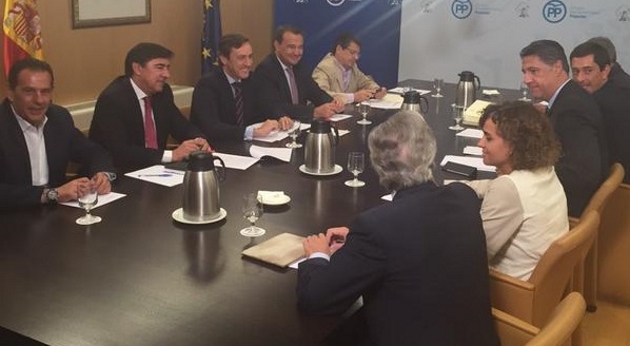 Lasvocesdelpueblo y Agencias – El candidato del Partido Popular (PP) a las próximas elecciones autonómicas catalanas del domingo 27 septiembre 2015, Xavier García Albiol, y el portavoz del PP en el Congreso de los Diputados de la patria, Rafael Hernando, han presentado este martes, 1 de septiembre 2015, en el registro del Congreso una reforma de la Ley Orgánica del Tribunal Constitucional (TC) para dotar a esta institución de mecanismos para hacer cumplir las resoluciones y actuar contra las personas que las incumplan. <Fotografía: Sede del Tribunal Constitucional de la patria y miembros del grupo del PP en el Congreso de los Diputados este martes, durante una reunión de trabajo sobre la propuesta del PP. Foto facilitada por el PP por Twitter>.