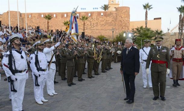 Efe – Juan José Imbroda ha pronunciado su discurso durante el acto institucional del Día de Melilla, al que han asistido las principales autoridades civiles y militares de la ciudad y en el que ha participado numeroso público, que ha podido asistir a la ofrenda floral ante la estatua de Pedro de Estopiñán, un homenaje a quienes dieron su vida por España y un desfile militar. El presidente de Melilla, Juan José Imbroda, ha salido en defensa de que la ciudad autónoma celebre el 17 de septiembre como el día en que fue fundada como ciudad española, y ha expresado su «más enérgica repulsa» ante quienes no están de acuerdo con que sea considerado el Día de Melilla porque eso supondría rechazar a España. Melilla (España), domingo 17 de septiembre de 2016. Fotografía: El presidente de la Ciudad Autónoma de Melilla, Juan José Imbroda (4d), pasa revista a las tropas hoy durante la celebración del Día de Melilla. Efe.