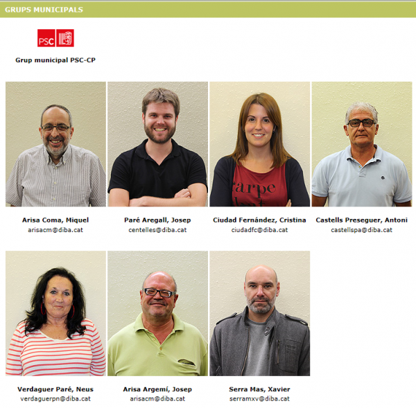 El PSOE gobierna con mayoría absoluta en Centellas. El socialista catalán (PSC) Josep Arisa es el concejal encargado de temas vinculados al proceso separatista, cuya presencia fue especialmente significativa este lunes 14 de agosto de 2017, según recoge también el diario separatista ‘El Punto Hoy’ (El Punt Avui) en su edición de este lunes 15 de agosto de 2017.