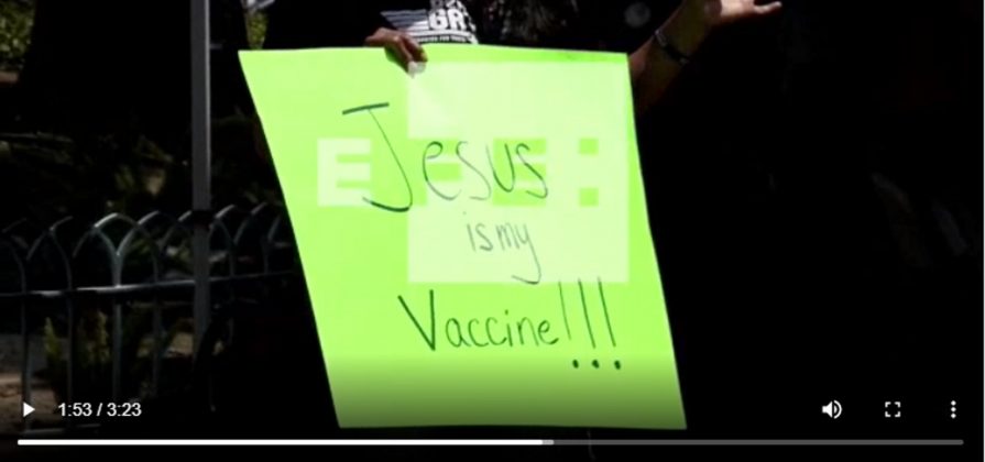 .En una de sus primeras protestas contra el totalitarismo COVID 19, ya exhibió este sábado las primeras pancartas contra los experimentos COVID 19. «Mi vacuna es Jesús Cristo», «los virus vienen y se van, si perdemos la libertad será para siempre», «la Vacuna COVID 19 tiene riesgo que es el nuevo ARN mensajero (RNm)»