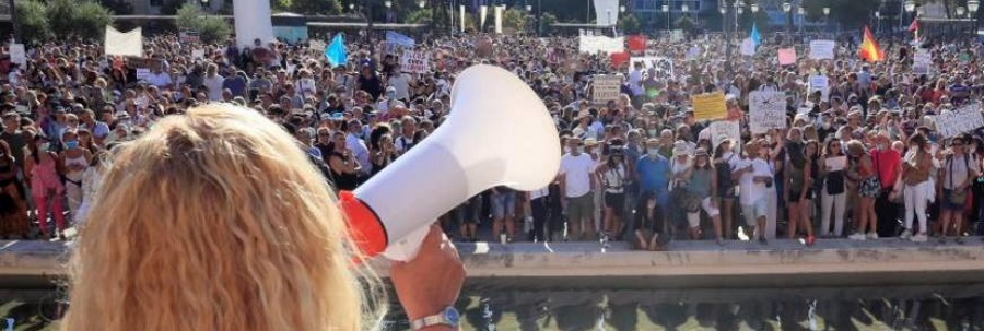 También contra la gestión del Ejecutivo de coalición socialcomunista del presidente Pedro Sánchez (PSOE) y vicepresidente Pablo Iglesias (Unidas Podemos), al que acusan de «atentar contra los derechos humanos», porque, según los participantes, «las personas sanas no deberían llevar mascarillas», la cual consideran «una auténtica tortura».