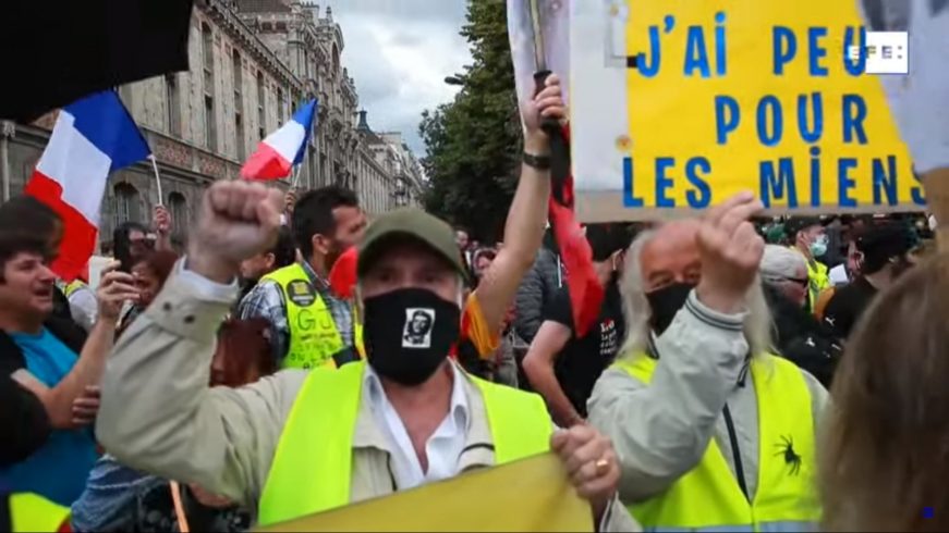 Las protestas prosiguen en todo el país mientras el Ejecutivo progresista mundialista de Macron mantiene su plan totalitario de contención de la nueva ola, basada en dos ejes, la imposición del certificado sanitario (Pasaporte COVID 19) para el acceso a la mayor parte de los lugares públicos y la obligación de vacunarse al personal clínico.