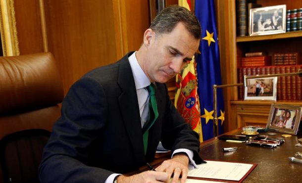 Efe – Se trata de la primera vez que el jefe del Estado convoca unos comicios, puesto que el jefe del Ejecutivo, ahora en funciones, no puede hacerlo, y también la primera ocasión en que los ciudadanos son llamados por segunda vez a las urnas ante la falta de acuerdo de las fuerzas políticas para investir presidente del Gobierno. En los casi cuatro meses que ha durado la legislatura más corta de la democracia, el Congreso ha vivido una actividad frenética aunque la práctica totalidad de las iniciativas que se han debatido y aprobado en este tiempo caerán hoy en saco roto con la disolución de las Cortes y la convocatoria de elecciones. Madrid, 3 de mayo 2016. Fotografía facilitada por la Casa Real del rey Felipe VI firmando en su despacho del Palacio de la Zarzuela el decreto de disolución de las Cortes y de convocatoria de las elecciones generales del 26 de junio, que se publica hoy mismo en el BOE. Efe.
