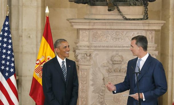 Ha destacado también que es «fundamental la contribución de miles de ciudadanos españoles y estadounidenses que cada día refuerzan con su labor los lazos entre los dos pueblos, que se respetan y saben mirar juntos hacia el futuro con confianza y determinación». «Estoy muy feliz de acogeros en nombre del pueblo español en este Palacio Real, símbolo de nuestra historia, una historia y una tradición que hace de nuestro país una nación con fuerte vocación americana y universal», le ha dicho Felipe VI a Obama.