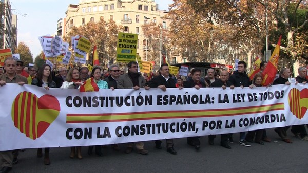 Lasvocesdelpueblo y Agencias – Los colectivos racistas catalanistas y partidos políticos xenófobos secesioncitas, entre ellos las coaliciones de Podemos en Cataluña –conocidos como «Los Comunes»: Barcelona en Común de la Alcaldesa Ada Colau, Badalona en Común, etc.’–, estudian pedir a los Ayuntamientos españoles en manos de gobierno municipales separatistas que no detengan la actividad el próximo martes 6 de diciembre de 2016, Día de la Constitución Española del 1978. Barcelona (España), martes 15 de noviembre d e2016. Fotografía: Barcelona 6D de 2015. Miles de catalanes recorriendo las calles de Barcelona de la Plaza Urquinaona de Barcelona hasta la Plaza San Jaime de Barcelona, ante el Ayuntamiento de Barcelona y Palacio de la Generalidad española en Cataluña. Archivo Lasvocesdelpueblo.