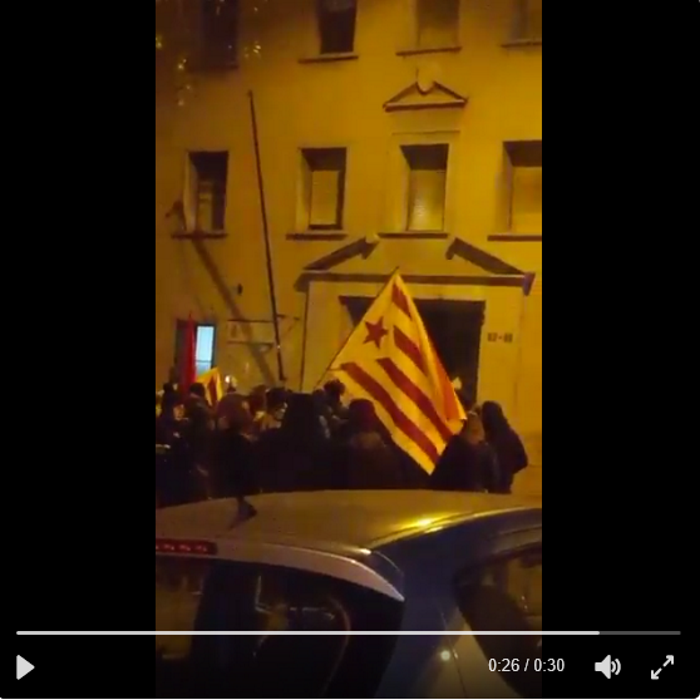 Los héroes de la patria presentes tuvieron que abandonar el portal dejando una de las puertas abierta, según vídeo, para refugiarse dentro el cuartel en la espera del refuerzo de las fuerzas especiales de los Mozos de Escuadra.